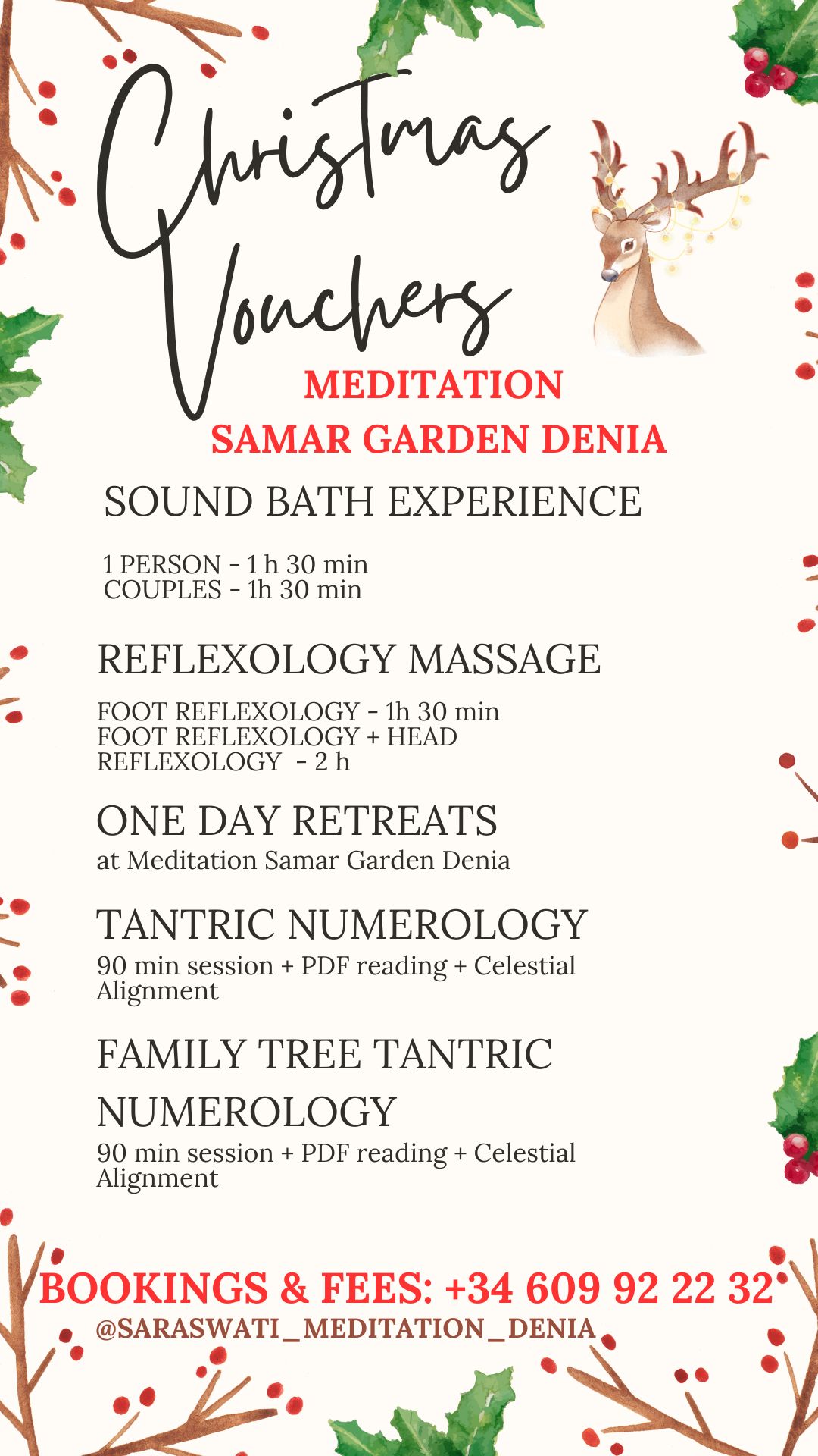 At Meditation Samar Garden Denia, I always want to give you the best possible service. To help me accommodate my clients and maintain a smooth schedule, I have established the following cancellation policy: